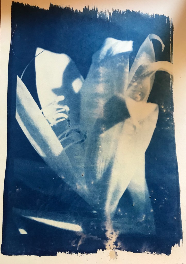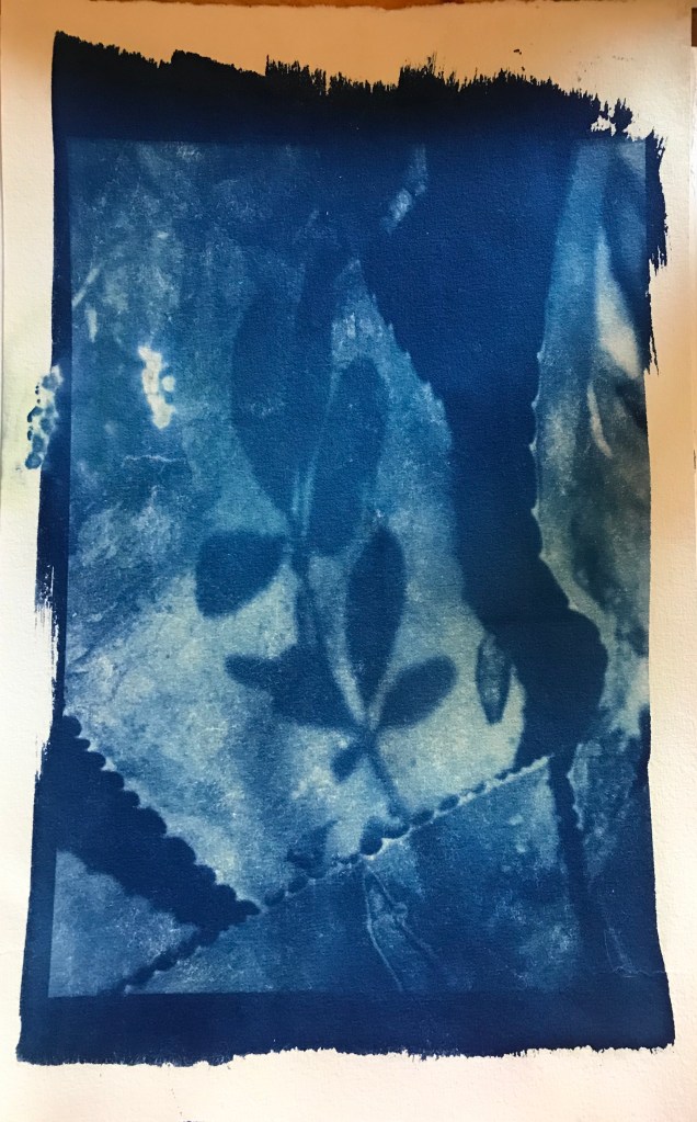 During Lockdown I experimented with Cyanotype – this is a really exciting process using photographic chemicals and the sun. It’s been hugely satisfying. I have sold a number of these little cyanotypes at markets and to clients.